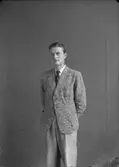 Ateljébild på en man i kostym och väst. Enligt Walter Olsons journal är bilden beställd av Gunnar Pettersson ifrån Loverslund.
