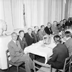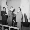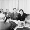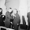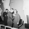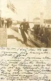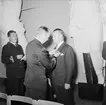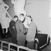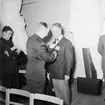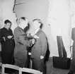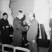Bilden visar kommendör Benedictsson som hälsar mot en annan sjöofficerare under en ceremonie ombord på pansarskepp Sverige.