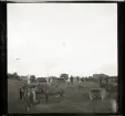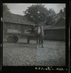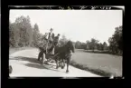 Barn i en vagn dragen av häst. Skansen, Stockholm.