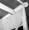 Vy över byggnader i Abisko. Alldeles till vänster på bilden syns en bit av elförrådet. Det stod tidigare närmare spåren. Detta elförråd flyttades i mitten på 40-talet för att ge plats till den nya elverkstaden som man den 21 april 1945 beslutat bygga och som stod färdig 1946.