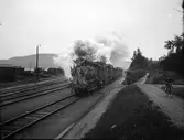 Berga station. Statens Järnvägar. SJ L29 1781 m tåg.