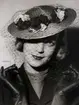 Porträtt av kvinna, möjligen modellen Hjördis Grundel-Starenius i hatt, garnerad med rosetter och flor.