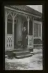 "Frida, Tegelbruket" Frida Fredriksson står på farstukvisten till ett hus.