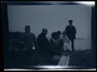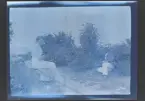 Två kvinnor på skidor, på tomten till familjen Morthensens villa Solveden, Djursholm.