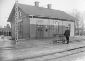 Gammal stuga i Barketorps by. (Stugan är ca 175 år gammal och bebos av smeden Karl Nordström, född 1862. Hans fader Jan Peter Nordström har bott i stugan i hela sitt liv, dog vid 80 års ålder. En rund spishäll 1772)