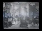 Vy från aulan på dåv. Växjö Högre Allmänna Läroverk. Längst skymtar man en kör på podiet tillsammans med ett piano m.m. Trol. foto från någon repetition eller likn.