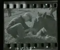 Heljesgården, Bolum. Lars Eriksson hämtar hästar på Hästavallen. Unghäst och hästen Docka. År 1935.