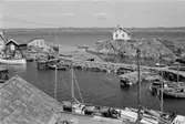 "Käringön. Käringöns fiskeläger ligger nordverst om Mollösund. Här är en bild tagen över Käringön med kyrkan i bakgrunden."