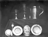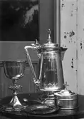 Kyrksilver i Kalmar domkyrka: nattvardskalk, patén, Silvret förvaras i valv. Det visas här som exempel.
