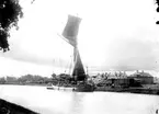 Stockholm, 1935. "Här är utsikten från lilla rumsfönstret. Det är Barnängens fabrik och Hammarbyleden där vi såg den stora båten. Hälsningar Eric".