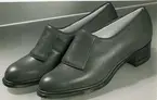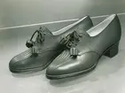 "Promenadskor av det nya materialet Reloxkalv. Mellansula av kork". Sko med snörning och klack.
