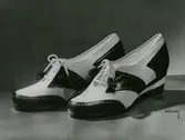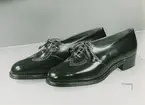"Promenadskor. handsydda sportskor, damskor i brunt eller svart". Perforeringar, liten snörning, klack.