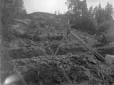 Brobyggnaden över Torne älv. Kran med gripskopa. Banan och bron över gränsen byggdes 1919.