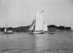 T v ses den norska reddningsskö¸yte R. S. 11 TROMSÖ; segeljakten t h med temporärt segelnummer 60 har inte kunnat identifieras.