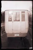 Scania-Vabis "Bulldog". Stockholms Läns Omnibuss AB, SLO. Stockholm-Roslagens Järnväg, SRJ buss 62 stående på Birger Jarlsgatan med S:t Georgios kyrka i bakgrunden.