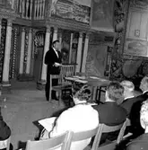 Läckö 1932. Borggården på Läckö slott med statyer av Jakob och Magnus Gabriel de la Gardie. (Skolresan till Läckö och Kinnekulle sommaren 1932)