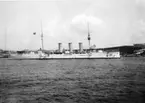 Bilden visar en grupp sjöofficerare i paraduniform med blankvapen på däcket.