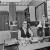 Aina Andersson född Åkesson har här just börjat på Köpmannaförbundets kansli 17-årig. Hon var född 1933 och stannade tills hon gick i pension 1/5 1997. Foto 1949-05-02.