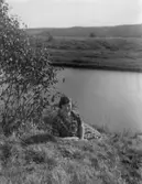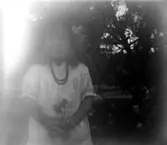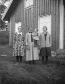 Svea Lund och Hulda Juliusson, Hedekas, framför en bil