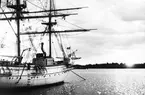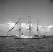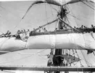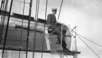 Fartygsbefäl blickar ut över havet under lovarts gångbord.