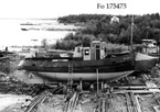 Vedettbåten Astrea under reparation vid Karlstads varv. Hon byggdes 1908 och gick till skrot 1947.