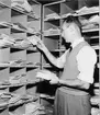 Handstämpling av brev på postkontoret Stockholm 2. Foton 2/4 1947.
