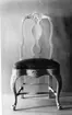Bilden visar sannolikt Thorsten Nissen som håller en duk bakom en stol. Uppenbarligen ska möbeln fotograferas.