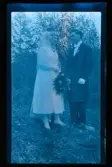 "Tessie och Olle Johansson, Kvarntorp." Porträtt av ett brudpar.