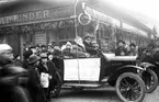 "Förlova Er i dag Ringar har jag" Texten står på en skylt som sitter på sidan av en bil placerad framför guldsmedsbutiken Harald Linder någon gång mellan 1917 och 1920. I bilens framsäte sitter en chaufför och en person med tomteklädsel, i baksätet ett par barn utklädda till brudpar. Butiken är juldekorerad och runt bilden står en folksamling, alla är vinterklädda och många i gruppen är barn.