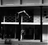 "Haja" Gustafsson tränar simhoppare Gullman vid Varmbadhuset, Fabriksgatan.