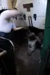 Motorn på flygplan Sk 11 nr 63 värms genom eldning, vintertid. En mekaniker står vid flygplanets nos. Cirka 1932-1939.