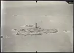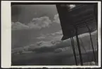 En flygsoldat står med en trafikledningsflagga på flygfältet på F 21 Kallax, 1942. Vy nedifrån. Bildtext vid foto: "Kallax. TL Arm och Bon." Foto skannat ur album: 'Minnen från Min kommistid 1940-1944'