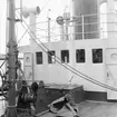 [från fotobeskrivningen:] "FINNGRUNDET förtöjes utanför Wasavarvet 16.7.1970"
