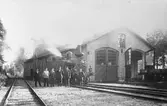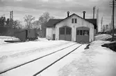 Parti av stationsomtådet. Trafik platsen öppnad 1856. Det första stationshuset var en- och enhalvvånings träbyggnad. Stationen öppnades1876 av SWB, Stockholm - Västerås - Bergslagens Järnväg. Då byggdes nytt stationshus vid breddningen väster om bangården av arkitekt Axel Kumlien. Det äldre stationshuset blev personalbostäder.