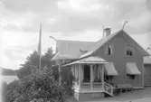 Foto av Thora och Ingrid på verandan, Gröndal (enligt bildtext i album).
