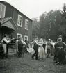 Skådespelare fyller på kaffe från kaffepetter till övriga i Wadköping, 1960-tal