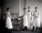 Trädgårdsskolan, interiör, skolköket, 12 flickor med lärarna Vilén och Andersson.