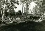 Gamla mjölnarstugan, baksidan. Å långväggen syns kökets bakdörr. Byggnaden riven.