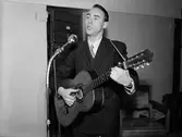 Underhållning med sång och musik. Bilden ingår i ett fotoalbum.