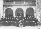 Konfirmandgrupp, flickor. I mitten David Ljungberg (1863-1935), komminister i Enköping fr.o.m. 1904, sedermera kyrkoherde.