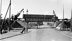 Från byggandet av Ölandsbron. Gjutform hissas på plats.