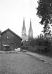 Skara. Domkyrkan, montering av kyrkfönster. Linnarsson och Sigge Hassing 1966.