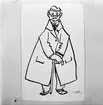 Harriet Jobs (gift med Peer Jobs) ritar en schablon till ett mönster av Lisbet Jobs. Schablonen ska användas i handtrycket. Jobs-utställningen på Nordiska Kompaniet mars 1945