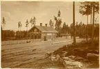 Stationshuset före branden 26/4 1915. Stationshus av trä, utvändigt tjärstruket, färdigt 1900 . 1915 nytt stationshus i tegel istället för det gamla som brunnit