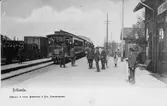 Trafikplatsen togs i bruk 1876. Mannen i den vita rocken på stationshusets trappa är stationsföreståndaren A J Svedlund.