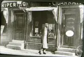 Vy mot Mösseberg, i förgrunden syns Dotorpsgatan och S:t Sigfridsgatan, till vänster en del av Humlegården, Leijons charkuteri- och mjölkaffär till höger.