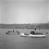 Noraström har lagt till vad kajen. På bildens baksida finns Bernt Fogelbergs anteckningar om båten, se bild nr 3 bland postens bilder.