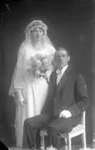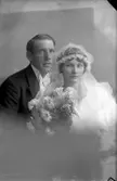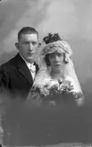 Enligt fotografens journal nr 5 1923-1929: "Holm, Bröllopet Brudparet". Enligt fotografens notering: "Bröllopet i Holm. Bernh. Johansson, Här".
