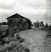 Heljesgården, Bolum. Eber Nilsson, arrendator och Lars Eriksson, omläggning av taket på ladugården 1960-talet.
