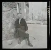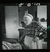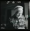 Uppvaktning av Hulda Eriksson (1874 - 1960) år 1959 på Brattåshemmet där hon bodde på 1950-talet. Hon sitter finklädd i en fåtölj med en huvudbonad på huvudet. Rummet är fyllt av blommor. Uppväxt på Heljered Västergård 3:3 "Larses Johns".
